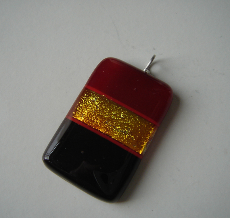 This pendant was made in a similar way to the blue pendants but using warm instead of cold colours underneath the dichroic glass.
