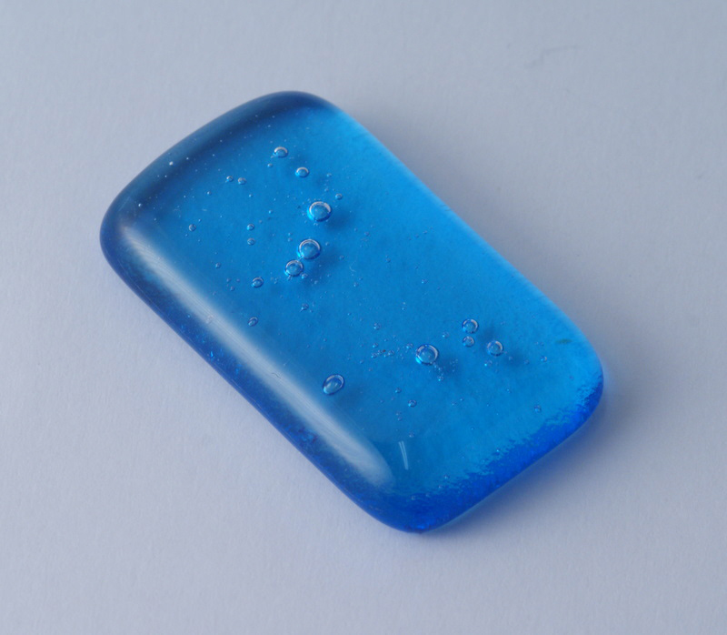 This was an experiment to see what happened when sodium bicarbonate was put between two pieces of glass and it was more successful than some other experiments we tried - too much creates huge bubbles, too little and it disappears. At some point I may drill a hole in this and hang it on a leather thong - for now it languishes in the scrap container.