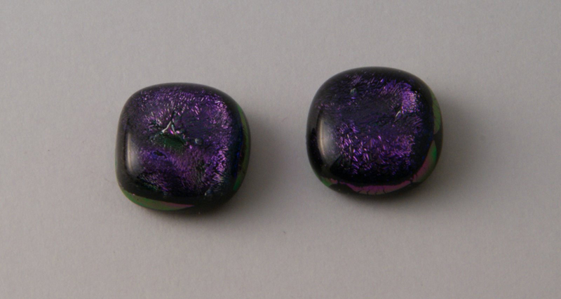 This pair were made for a friend to show her how easy glass jewellery was to make - two pieces of soft ripple purple dichroic topped with clear glass.